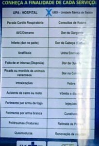 Os problemas da saúde pública brasileiros são por demais conhecidos pela população, apesar da sociedade dispor do mais perfeito modelo de distribuição de atendimento público do mundo, segundo especialistas da OMS, sustentando  ao trabalho da medicina gratuita e para todos, o SUS – Sistema Único de Saúde, em Planaltina, devido a má gestão, não pode ser diferente.UPA cheia na tarde-noite de 11 de dezembro de 2025.Depois de passar pelo Posto de Saúde 04, Setor Leste, onde, segundo atendentes não tinha médico para atendimento emergencial naquele horário, uma enferma que deixaremos de mencionar o nome, foi buscar atendimento na UPA – Unidade de Pronto Atendimento. A equipe trabalhando naquela tarde na UPA do Jardim Paquetá, em Planaltina, no Estado de Goiás, Brasil estava completa e com nomes expostos no quadro, de frente à entrada, composta por seis profissionais,  quando cheguei com a mencionada enferma para consultar. Eram cerca de 16:50h e o movimento daquela Unidade de Pronto Atendimento estava a olhos vistos, dentro da normalidade. A enferma foi até ao guichê de atendimento, fez sua ficha e aguardou a triagem que ocorreu dentro de 30 minutos, mais ou menos. Logo, certamente, logo após as 18:00h trocaram os nomes da equipe de trabalho, que passou a ser a exposta no quadro já mencionado e os quais deixaremos de mencionar por zelo á ética do jornalismo.Fora da UPA gente chegando e saindo. Quase todos atendidos dentro de uma, duas horas de espera.Ocorreu que a enferma que chegou a UPA às 16:50h, quem gerou esta matéria, saiu sem atendimento quando se aproximava das 22:00h, depois de não entender e chamar a atenção para o atraso em seu atendimento às 19:00h, às 20:30h e, por fim, com dores horríveis e já impaciente, foi buscar outro recurso, abandonando sua consulta, já que os médicos, naquela hora saíram para jantar e retornariam para atender dentro das determinações conhecidas. Tinham  classificado como prioridade “verde” (sem problema), uma senhora com mais de cinquenta anos, que deixara seus serviços devido a fortes dores no peito e nas costas, assim também como faziam com mais alguns  outros doentes, enquanto só atendiam a aqueles com fichas “amarelas” (meia urgência).Tirem os leitores suas próprias conclusões.  Está correto deixar sem atendimento a quem mereceu análise meramente visual, primária, de prioridade, enquanto se atende a 20, 30 pessoas, sem atentar para aqueles que há duas horas esperam? Acreditamos que deve-se intercalar os atendimentos, mesmo quando a classificação de prioridade apontar para menor gravidade. Afinal, ninguém minimamente consciente irá procurar “pronto atendimento”, quando se faz tratamento de rotina. E houve tempo para isso naquela UPA, possibilitando que todos da prioridade “verde’ fossem atendidos. A má gestão foi o problema naquela oportunidade. Fica o alerta.Quadro de classificação que deve orientar aos atendimentos.