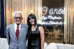 Cacildo Ramos e esposa. Presidente da União e Liberdade II por cinco vezes e construtor maior do Complexo Maçônico da Loja aniversariante.
